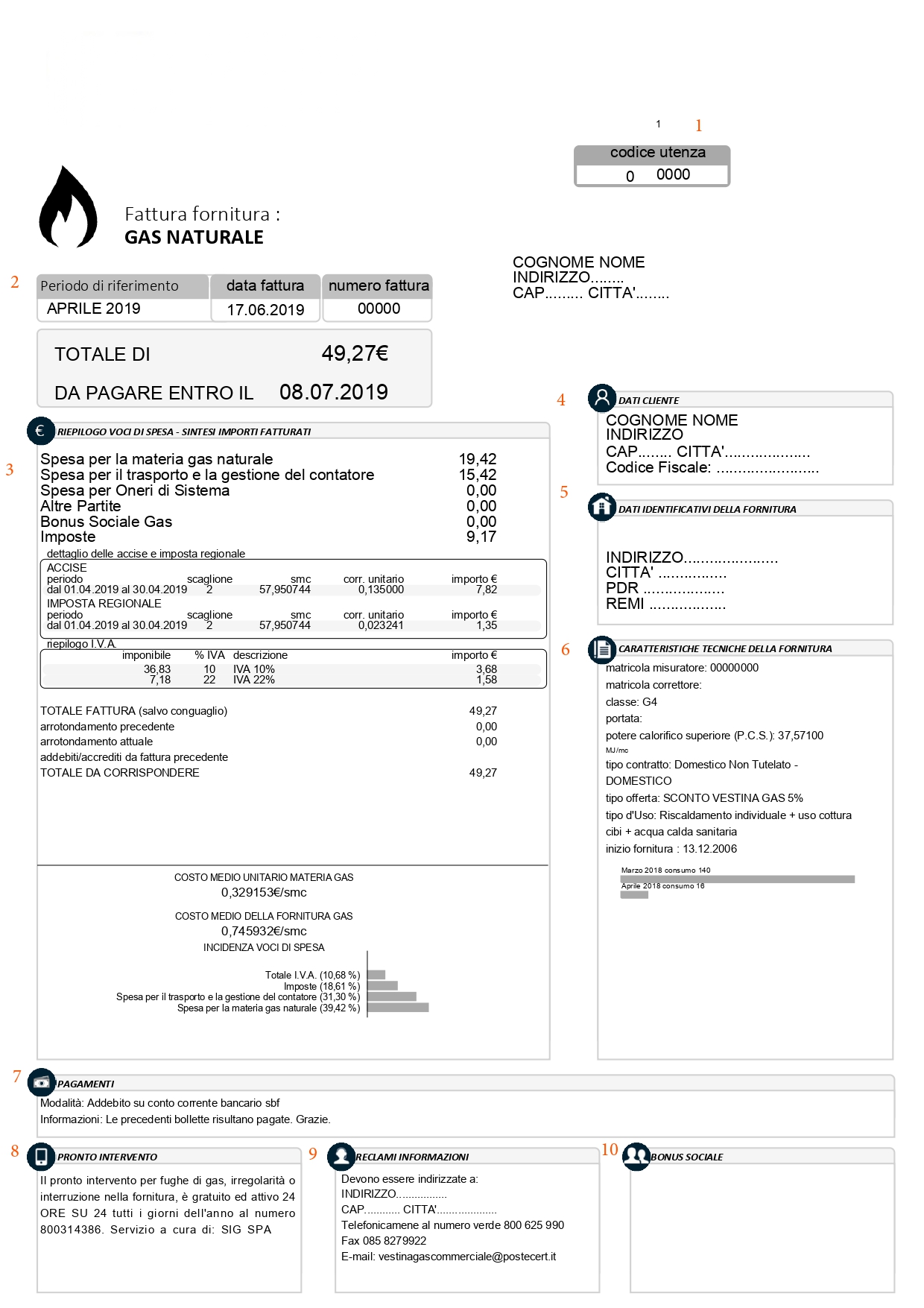 In alto è indicato l’indirizzo del luogo dove viene fornito il gas.